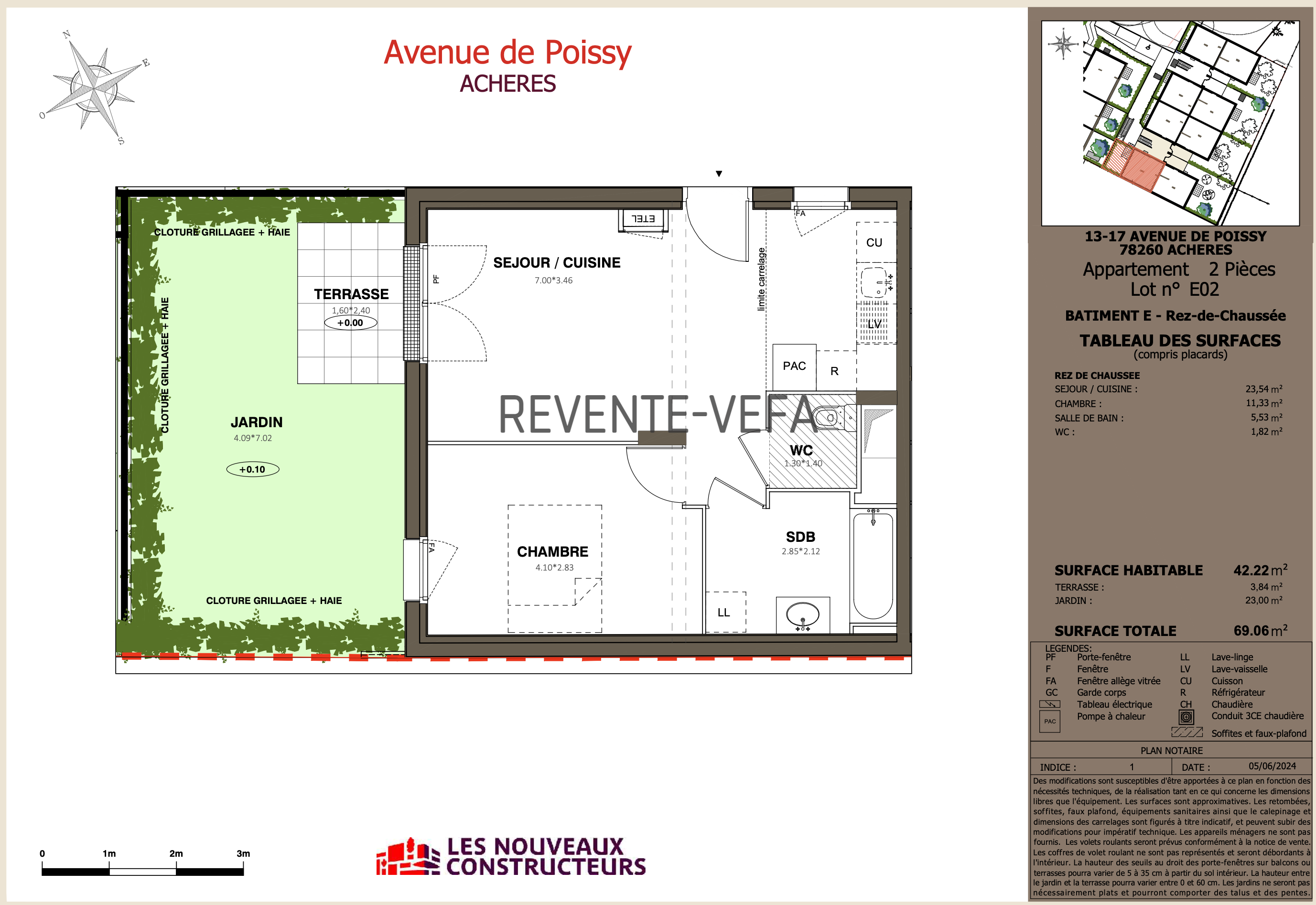 Revente-VEFA vous propose en exclusivité un appartement T2 avec terrasse et jardin en revente (cession de VEFA) dans la nouvelle résidence "Les allées de la Chesnaie" en cours de construction à Achères.